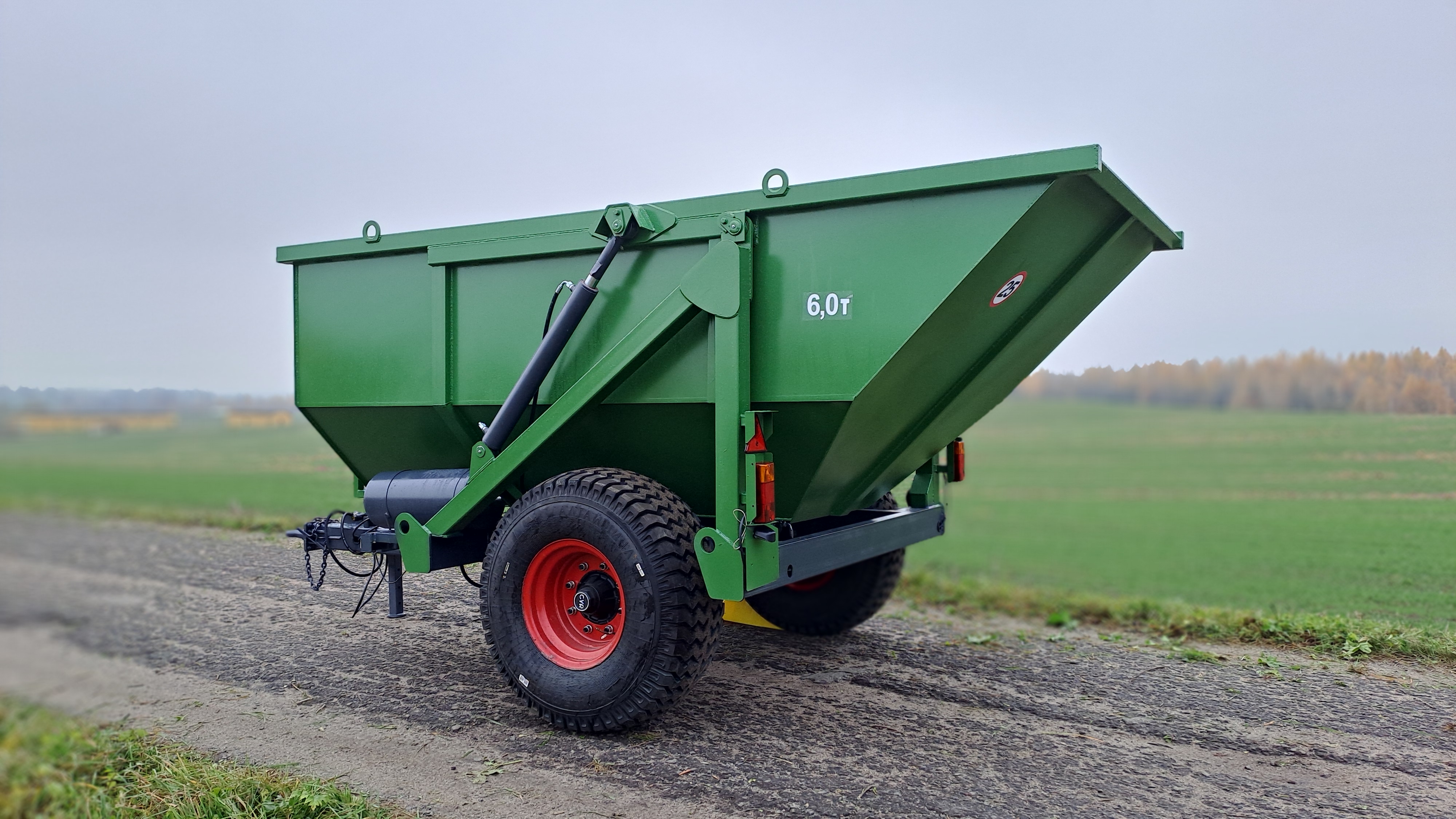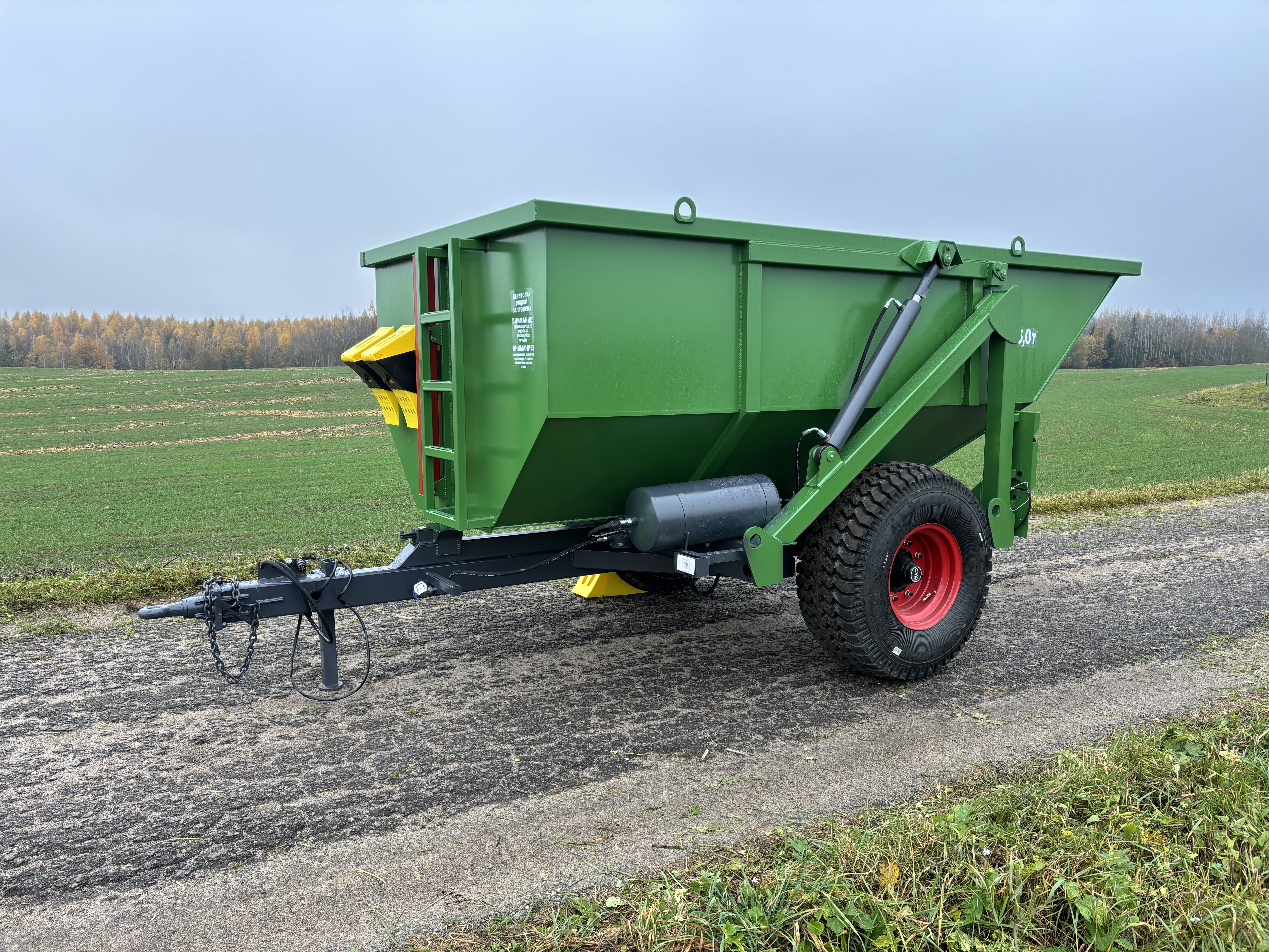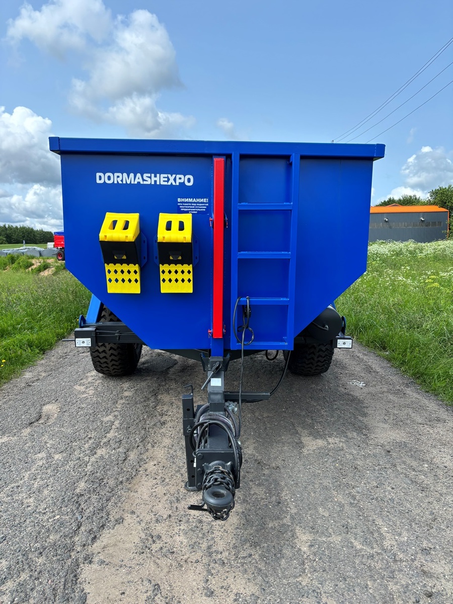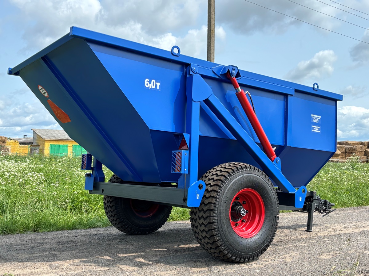 Опрокидывающий механизм кузова работает от гидросистемы трактора и состоит из разрывной полумуфты, трубопроводов, шлангов высокого давления, крана ограничения подъема кузова и гидроцилиндров. Гидроцилиндры телескопического типа. Стойка предохранительная предназначена для удержания порожнего кузова в поднятом положении при проведении работ по техническому обслуживанию. Кузов имеет форму трапеции. Конструкция сварная. Дышло полуприцепа сварное. Имеет убирающуюся опору для фиксации кузова на грунте. Дышло оснащено поворотной сцепной петлей.