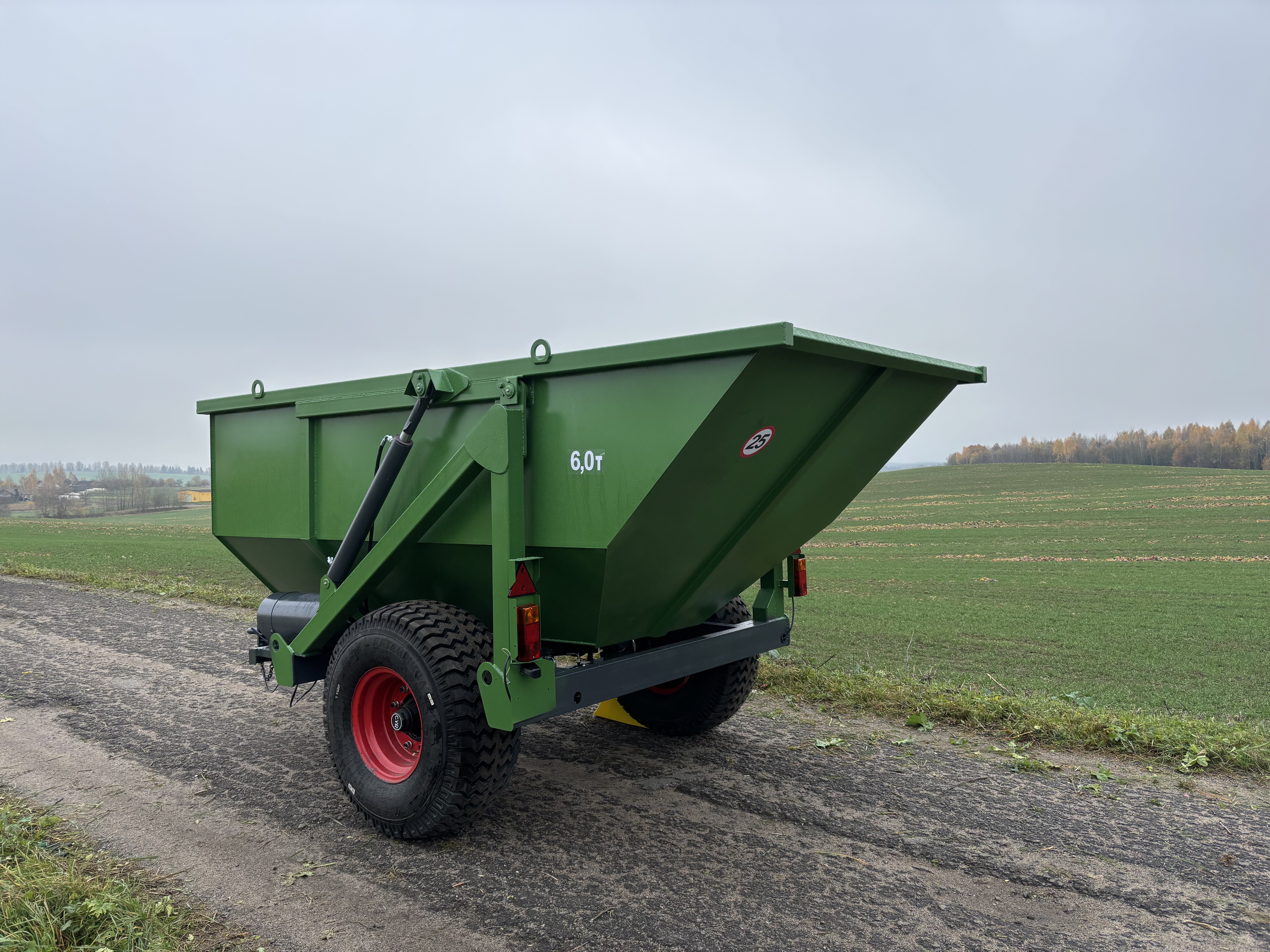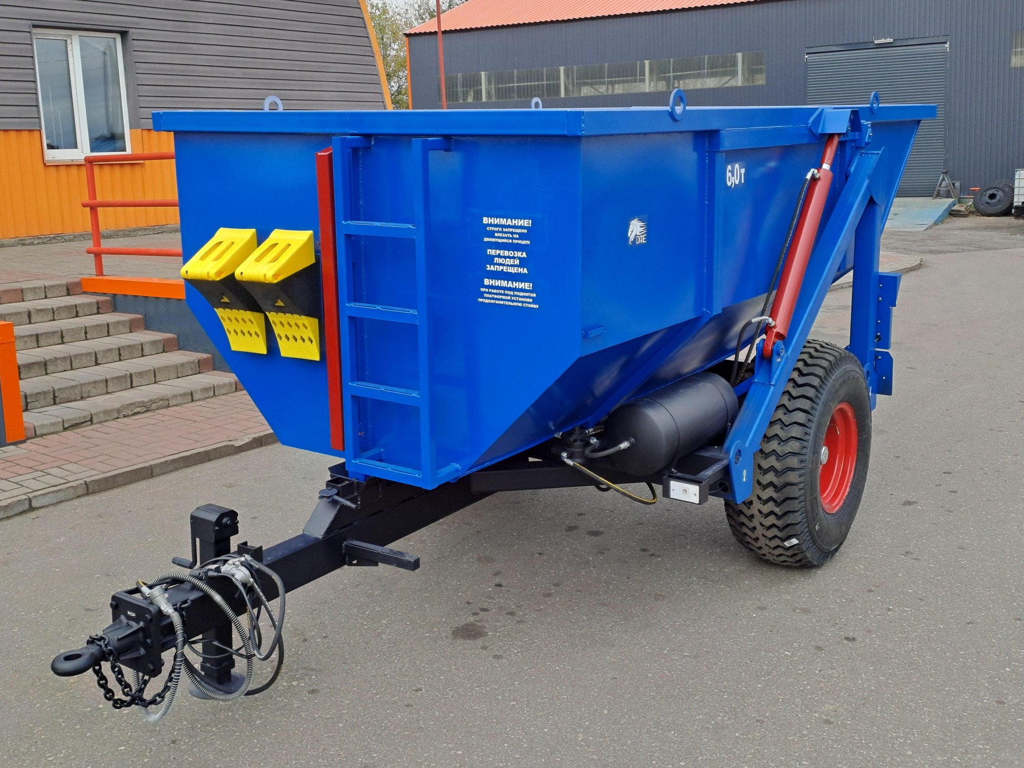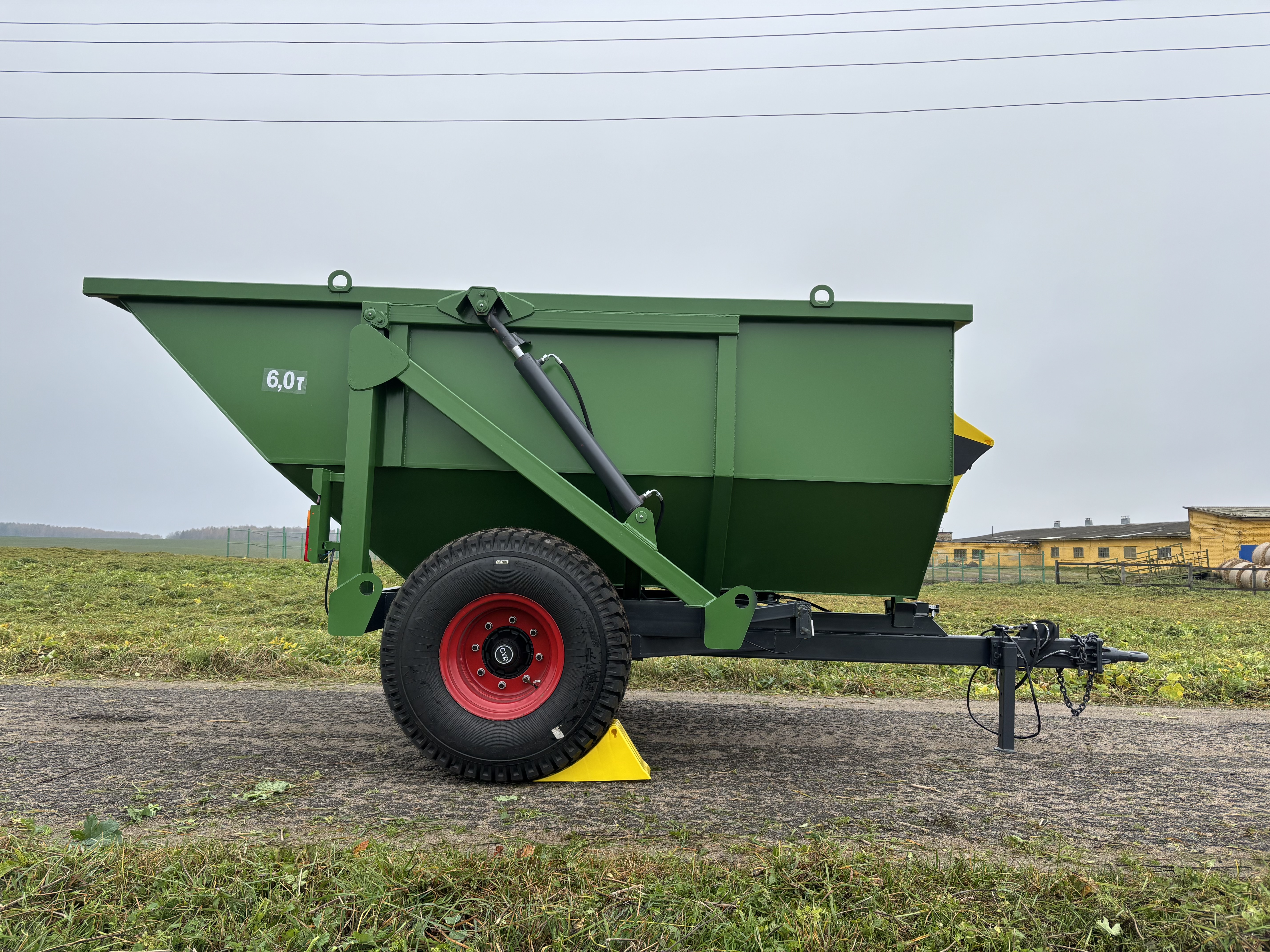 Опрокидывающий механизм кузова работает от гидросистемы трактора и состоит из разрывной полумуфты, трубопроводов, шлангов высокого давления, крана ограничения подъема кузова и гидроцилиндров. Гидроцилиндры телескопического типа. Стойка предохранительная предназначена для удержания порожнего кузова в поднятом положении при проведении работ по техническому обслуживанию. Кузов имеет форму трапеции. Конструкция сварная. Дышло полуприцепа сварное. Имеет убирающуюся опору для фиксации кузова на грунте. Дышло оснащено поворотной сцепной петлей.