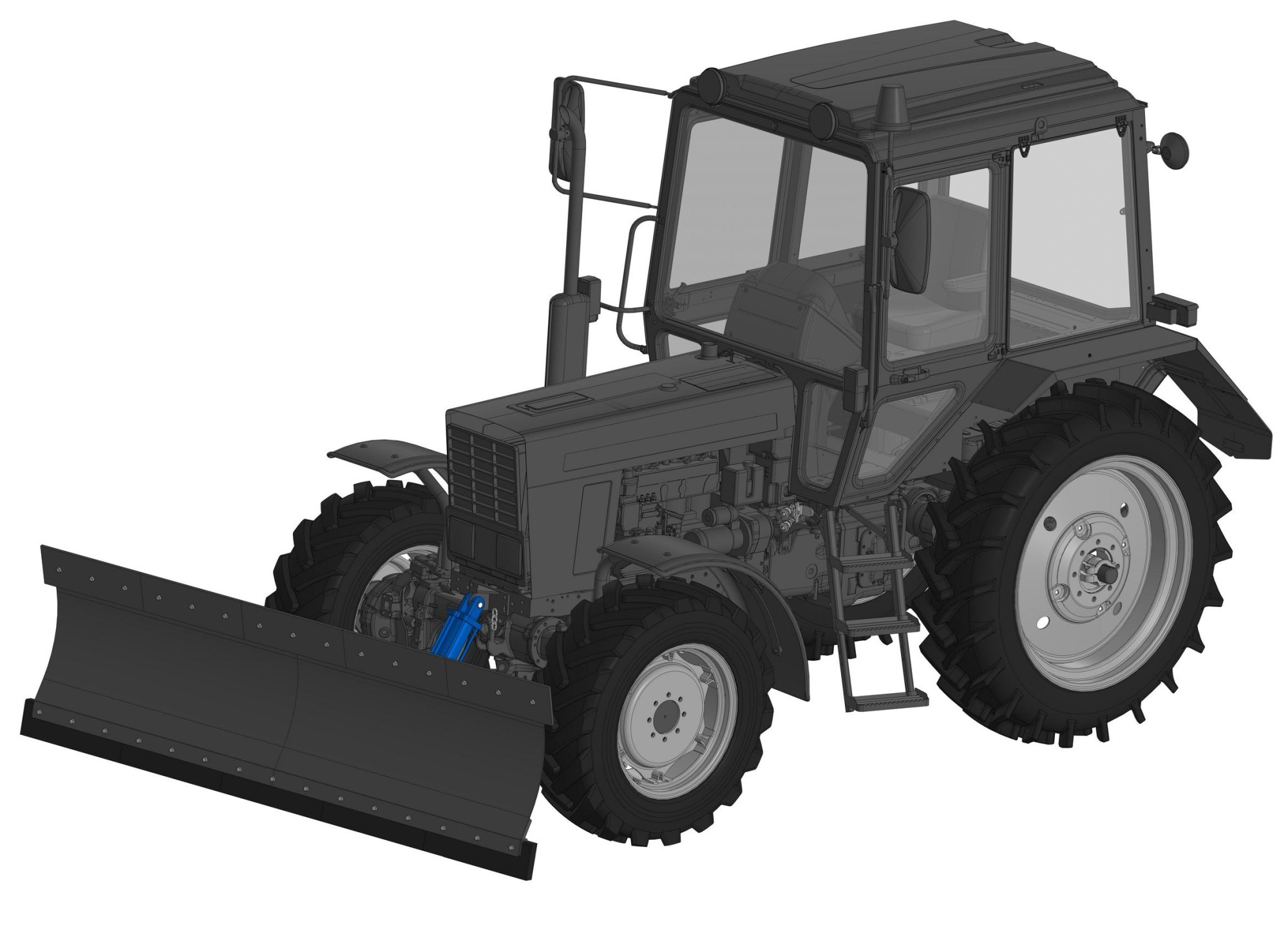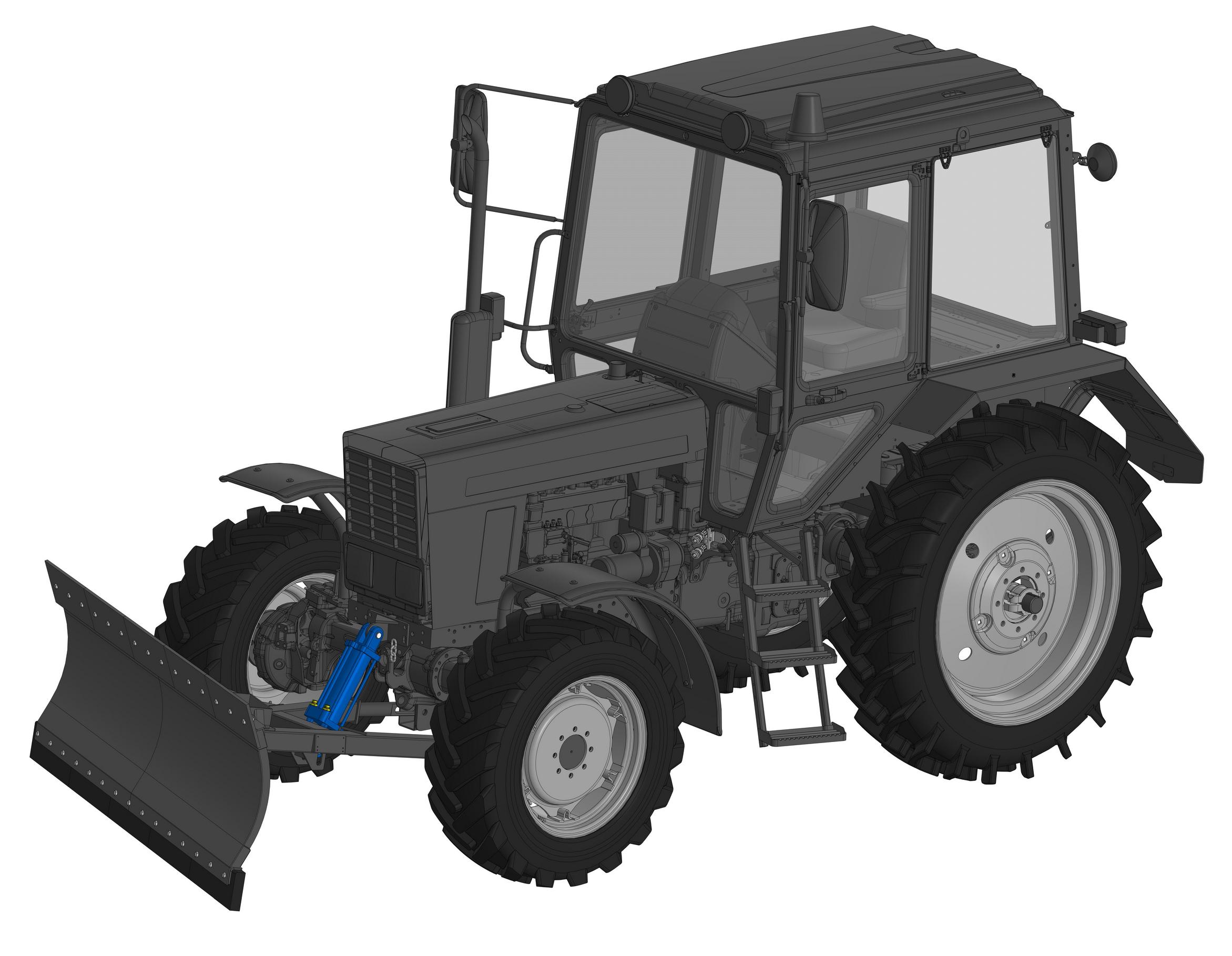 Подъем и поворот отвала осуществляются гидроцилиндрами с управлением из кабины трактора.