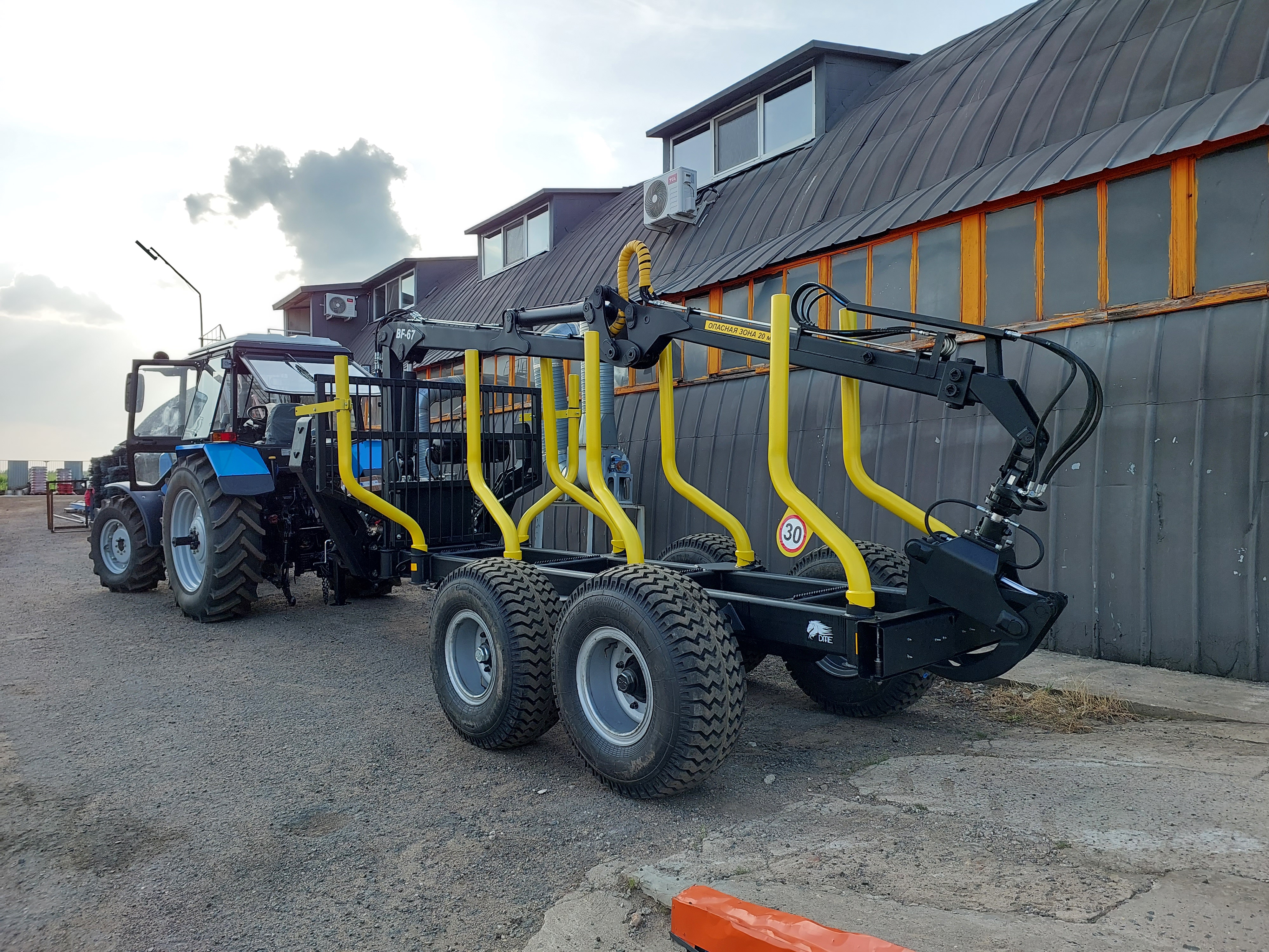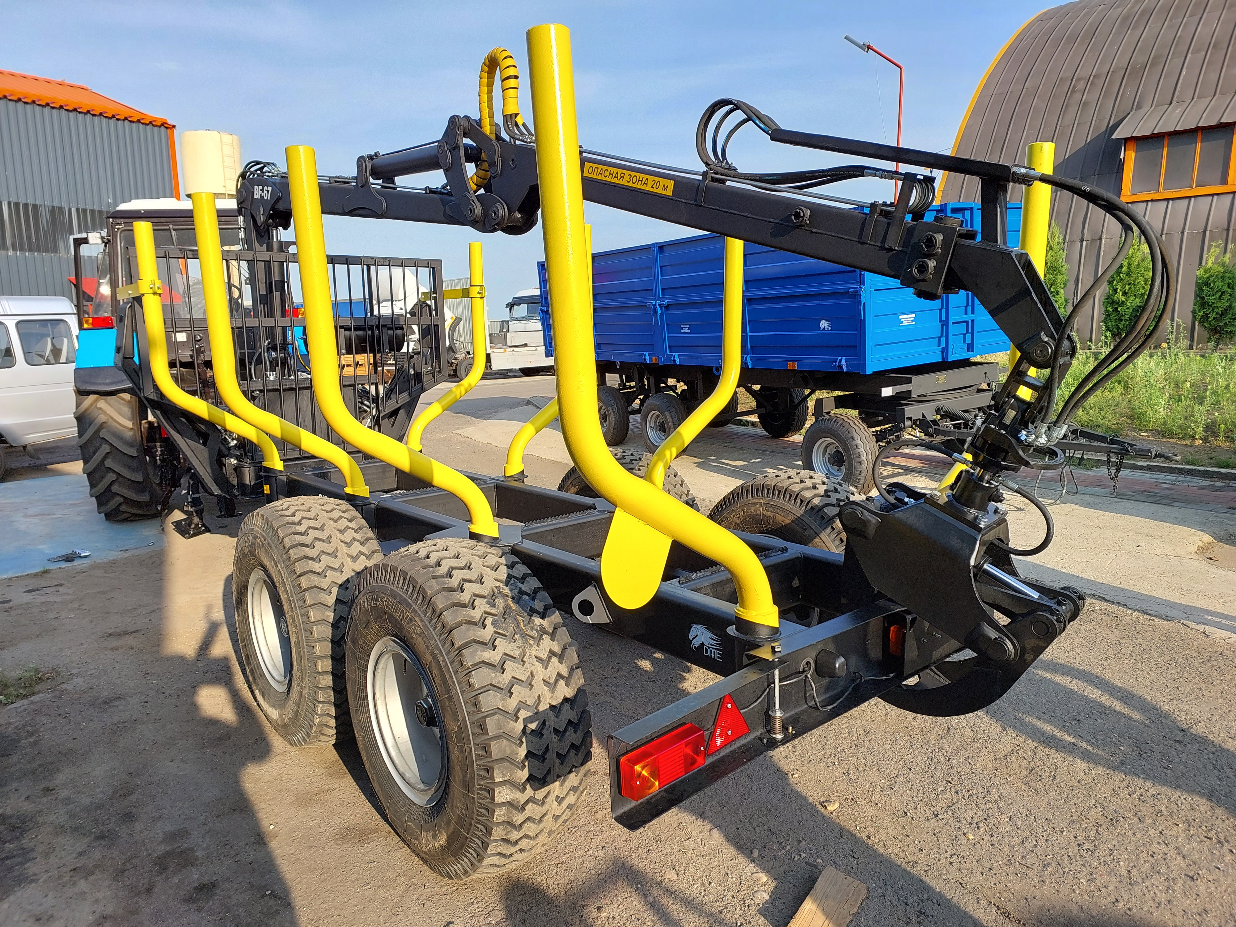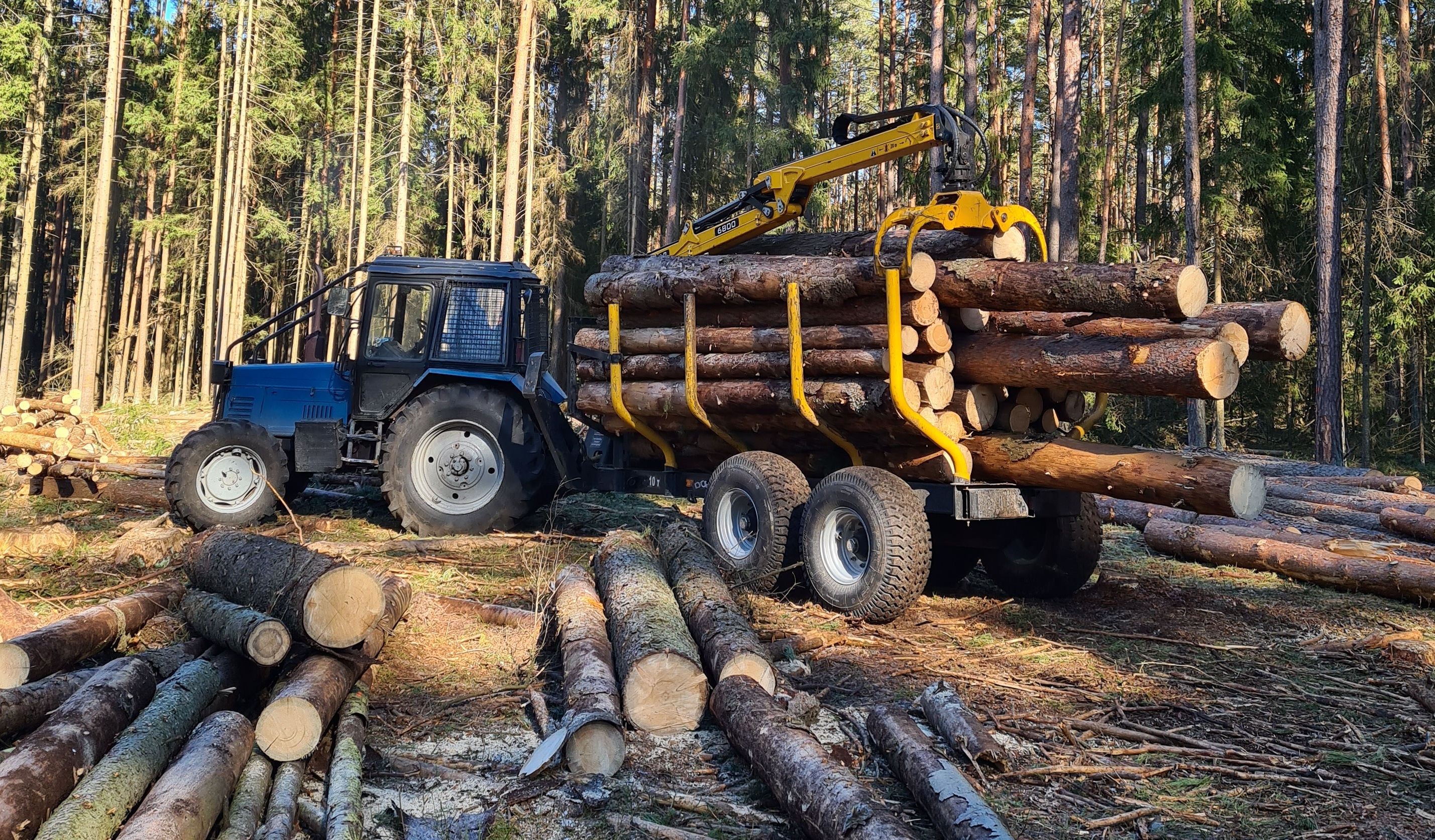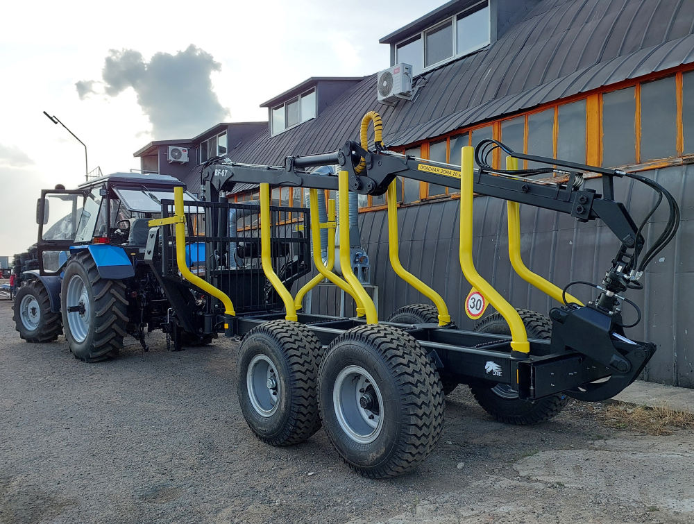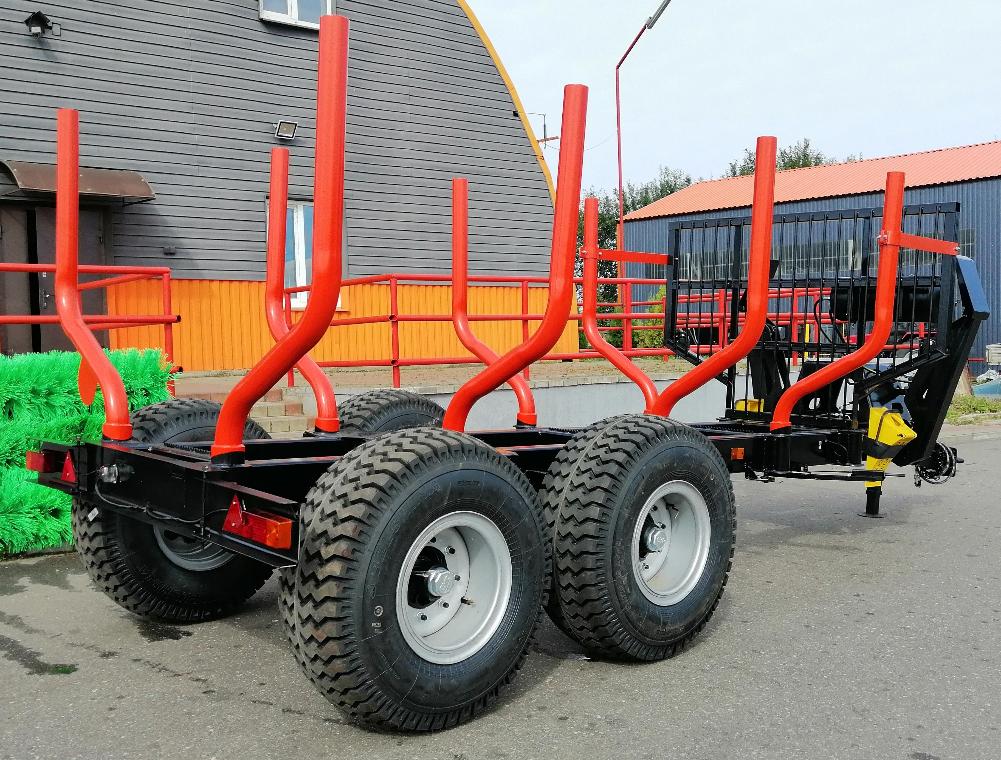 Наши прицепы предназначены для перевозки сортиментов длиной до 6 м – основной стандарт длины деловой древесины. Чтобы эксплуатировать прицепы в условиях пересеченной местности, а также на дорогах общего пользования, предусмотрены тормоза на переднюю пару колес. Прицепов оборудованы электрическими указателями «стопов», «поворотов» и «габаритов».